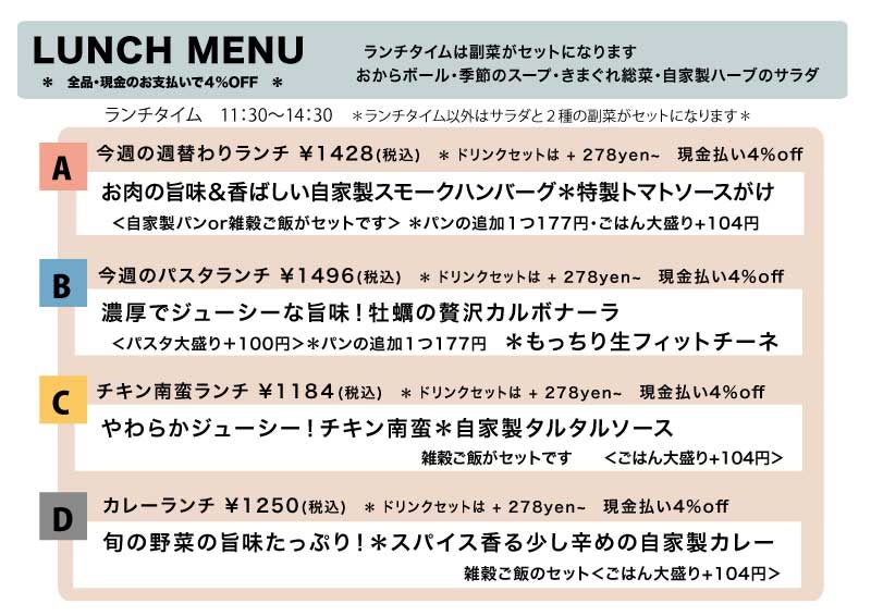 <ランチ出し始めが11:30~となります>10月 23日(木)~のメニュー