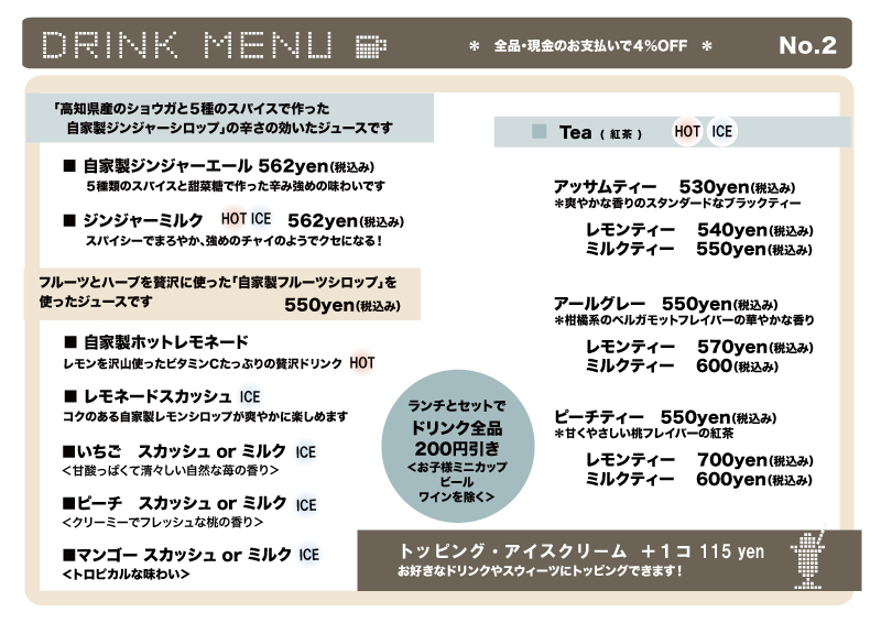 1ドリンクご注文で¥50お値引き