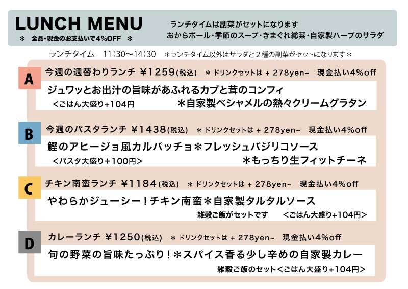 <ランチ出し始めが11:30~となります>12月11日(木)~のメニュー