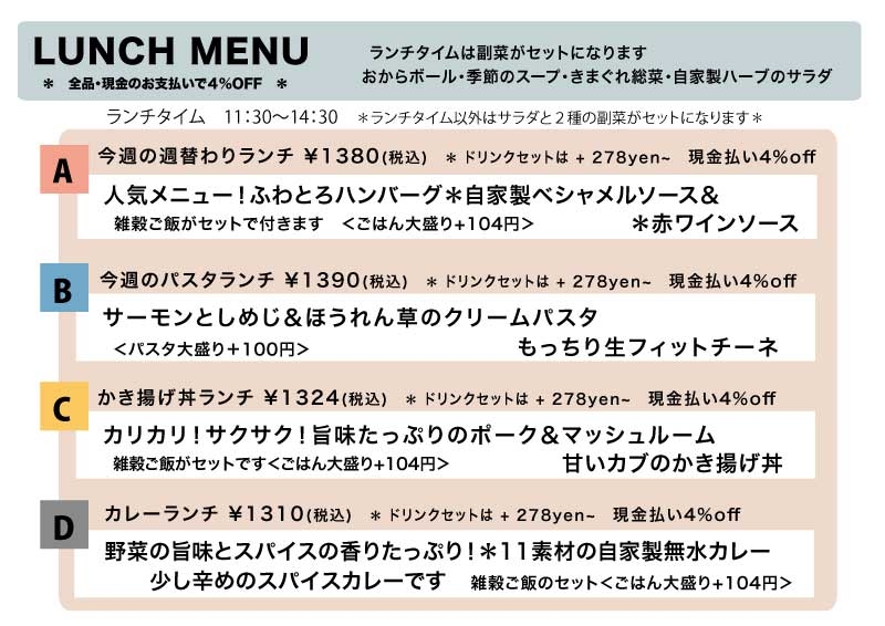 <ランチ出し始めが11:30~となります>1月16日(金)~のメニュー