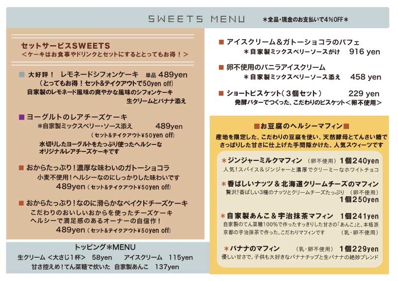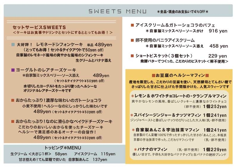 *ランチセット、ドリンクセットで限定スウィーツ1つのみ割引価格になります。